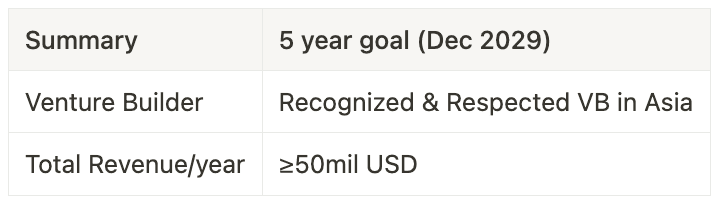 Become a renowned venture builder firm in Asia, specializing in the service, media, and tech industries.